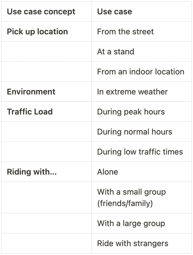 Use cases can be categorized with concepts. Such as pickup location.
